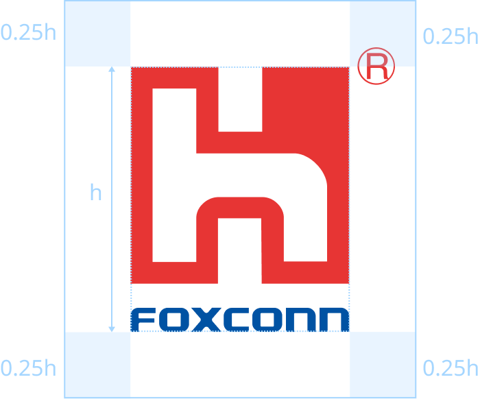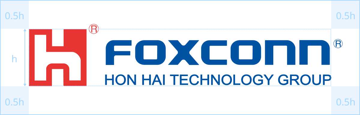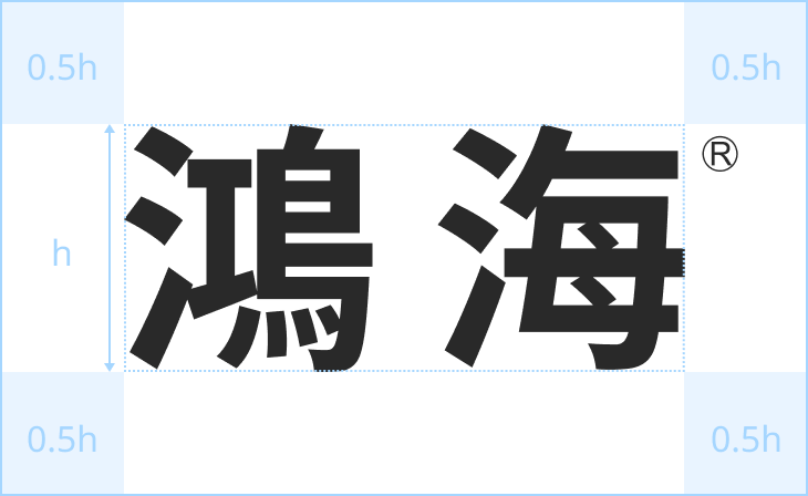 鸿海商标、HON HAI 商标、Foxconn 商标、富士康商标边缘必须保留商标高度0.5h的空间。